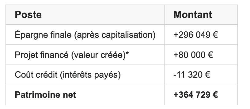 Votre épargne reste investie et continue à produire des rendements pendant que vous remboursez le crédit. Si votre épargne rapporte plus que le coût du crédit, vous créez un effet de levier positif.